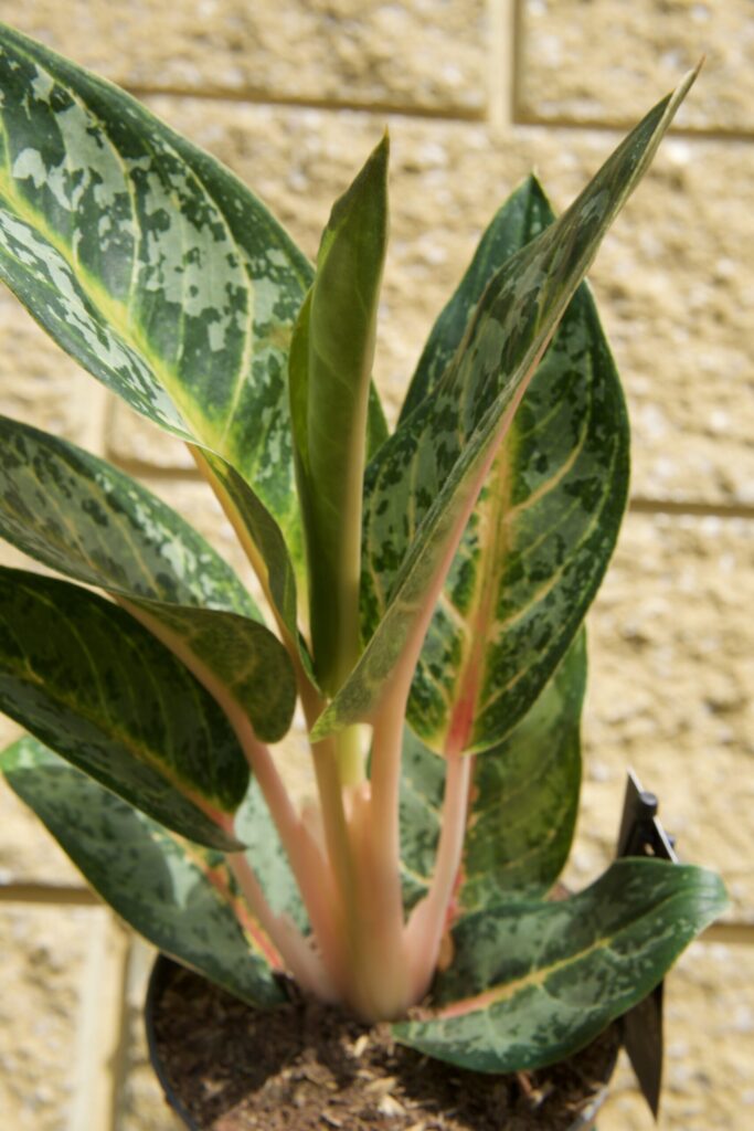 Aglaonema Orange Flame to ognistą mieszanka zieleni, brzoskwiniowego różu i srebrzystych plam na liściach — prawdziwy ogień wśród zieleni. Pochodzi z Azji Południowo-Wschodniej; zwykle osiąga 30–50 cm.