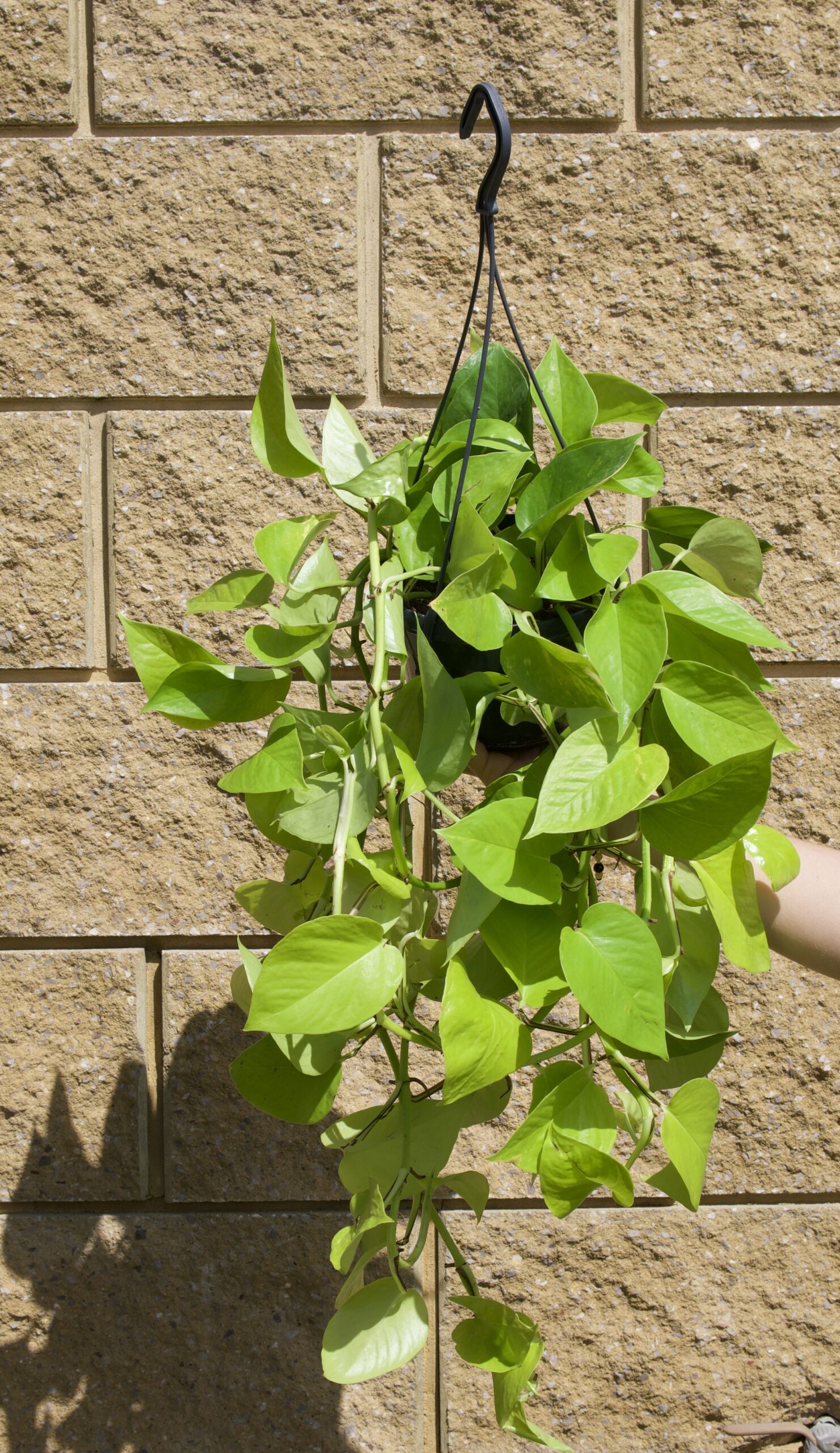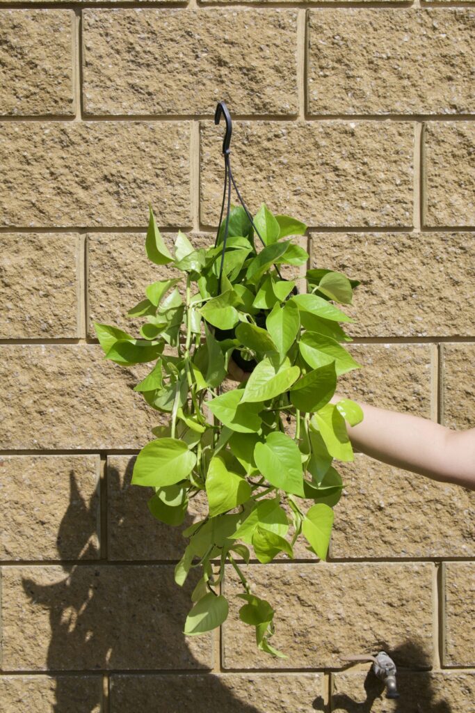 Golden Pothos, inaczej devil’s ivy (Epipremnum aureum), zachwyca sercowatymi liśćmi w jasnych odcieniach złota i limonki. To pnącze, które rośnie dynamicznie — można je prowadzić po podporach lub pozwolić mu luźno zwisać. Idealne, jeśli potrzebujesz zielonego akcentu do wiszących aranżacji.