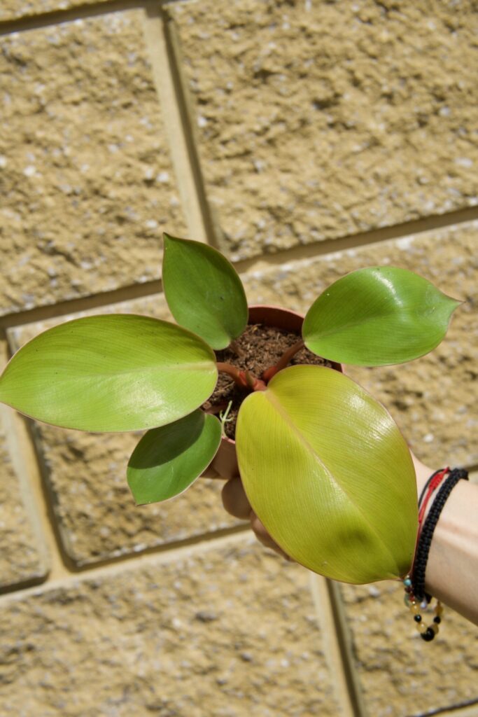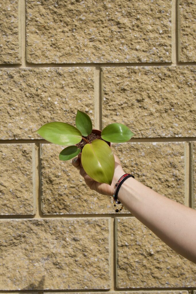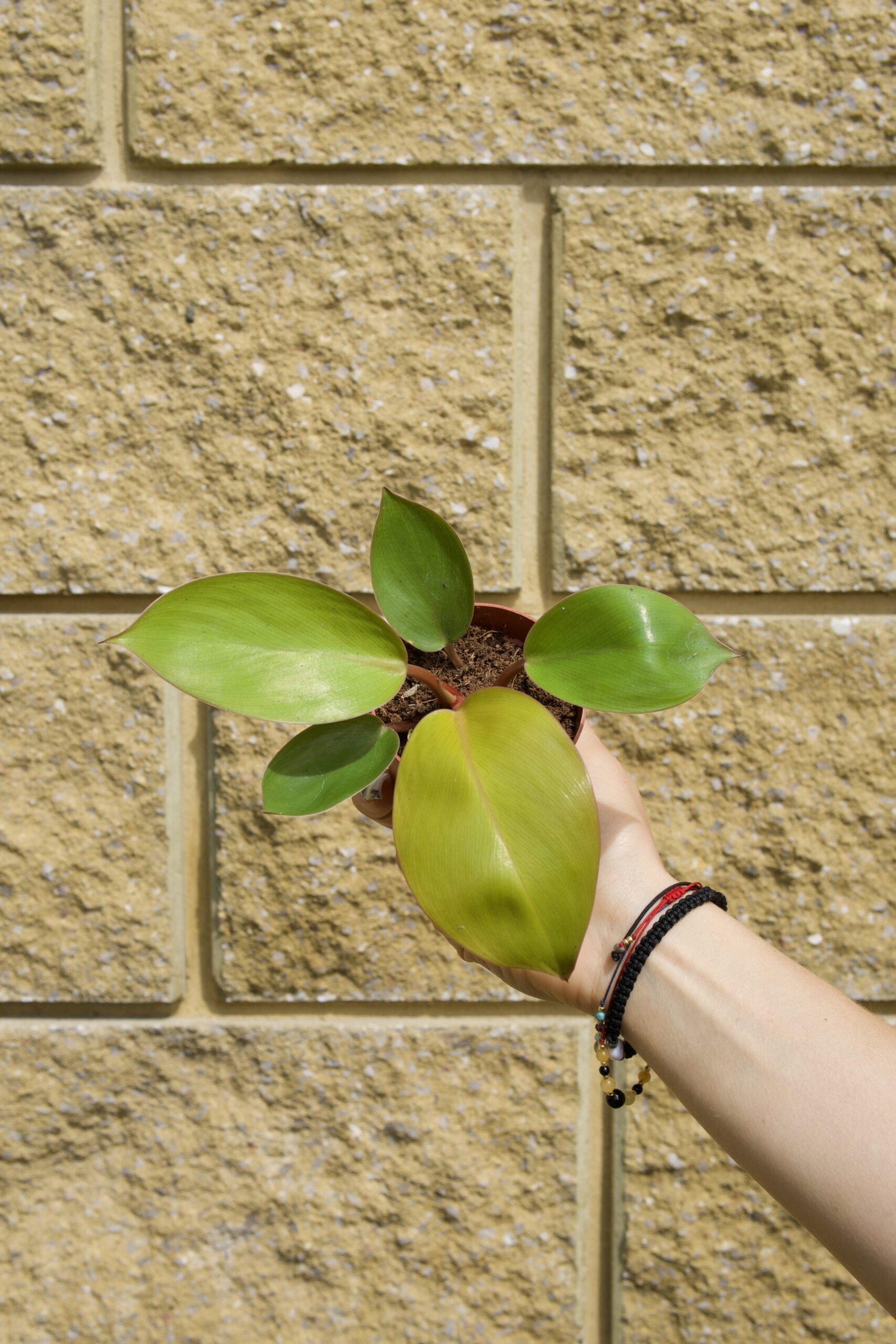 Philodendron ‘Mars’ to maleńka roślina o bogatych, głęboko czerwonawych liściach w miarę rozwoju, które z czasem stają się głęboko zielone. Ma kompaktowy wzrost — doskonała do biura lub małej półki.