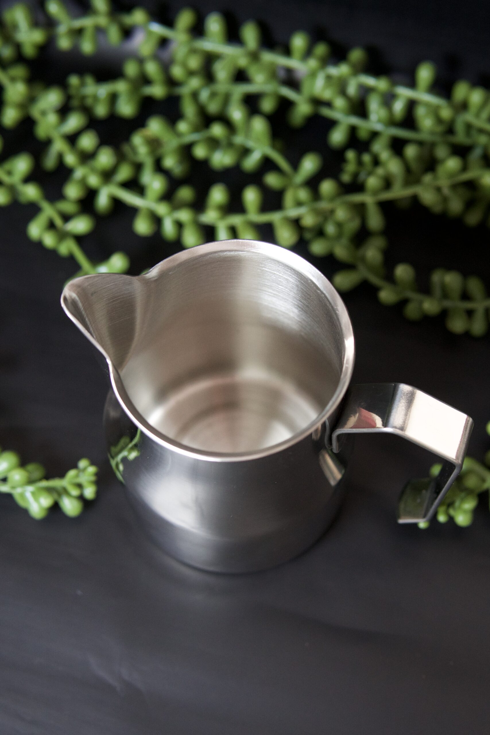 Dzbanek do spieniania mleka, w którym prostota spotyka się z precyzją. Wykonany z wysokiej jakości stali nierdzewnej, zapewnia równomierne nagrzewanie i pełną kontrolę nad procesem spieniania. Wyprofilowany dzióbek ułatwia tworzenie latte art, a solidny uchwyt leży pewnie w dłoni, pozwalając na swobodne manewrowanie. Idealny zarówno dla początkujących, jak i doświadczonych baristów, którzy cenią sobie trwałe narzędzia i perfekcyjny efekt w filiżance. Niezawodny w codziennej pracy – od porannej cappuccino po popołudniowe flat white