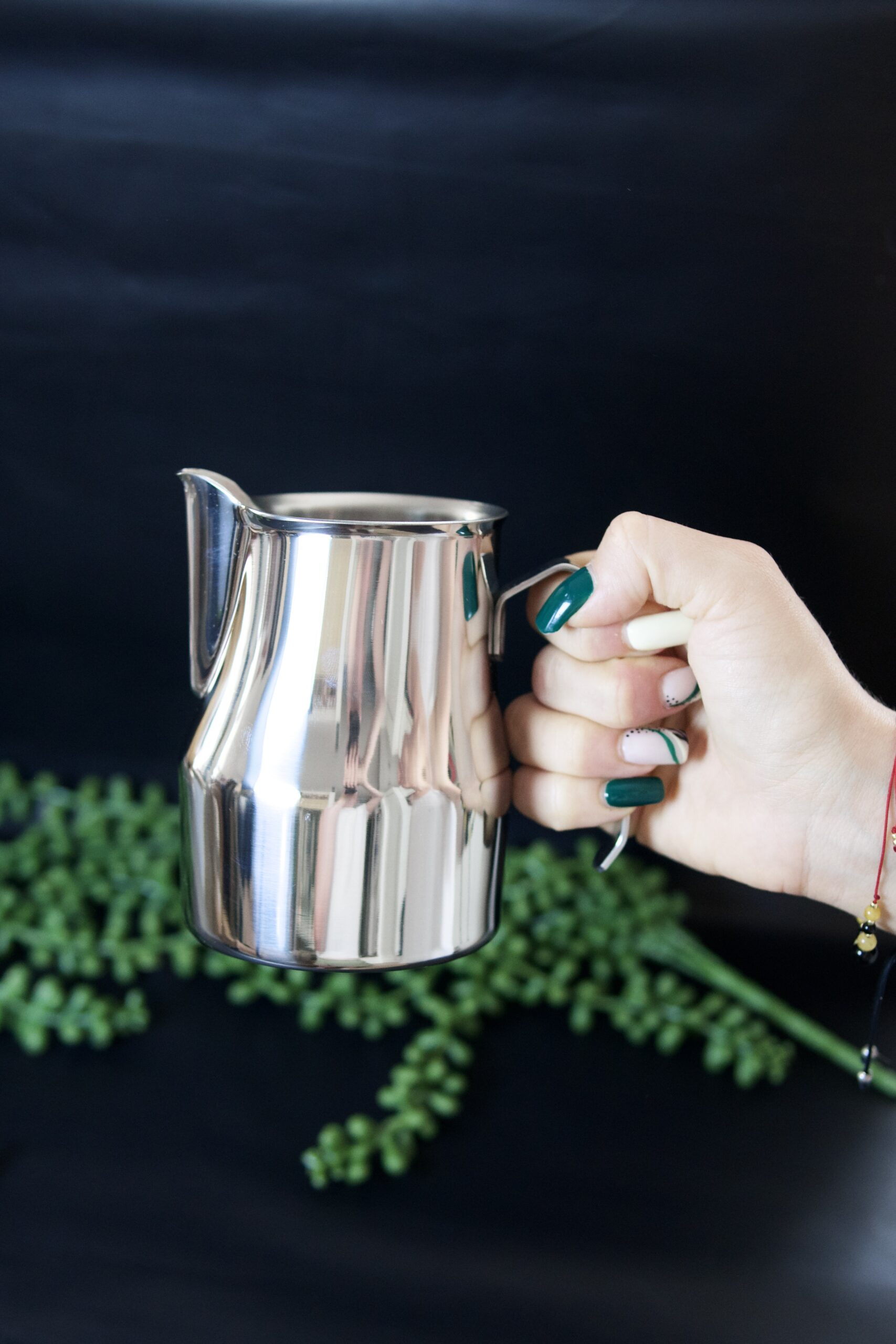 Dzbanek do spieniania mleka, w którym prostota spotyka się z precyzją. Wykonany z wysokiej jakości stali nierdzewnej, zapewnia równomierne nagrzewanie i pełną kontrolę nad procesem spieniania. Wyprofilowany dzióbek ułatwia tworzenie latte art, a solidny uchwyt leży pewnie w dłoni, pozwalając na swobodne manewrowanie. Idealny zarówno dla początkujących, jak i doświadczonych baristów, którzy cenią sobie trwałe narzędzia i perfekcyjny efekt w filiżance. Niezawodny w codziennej pracy – od porannej cappuccino po popołudniowe flat white