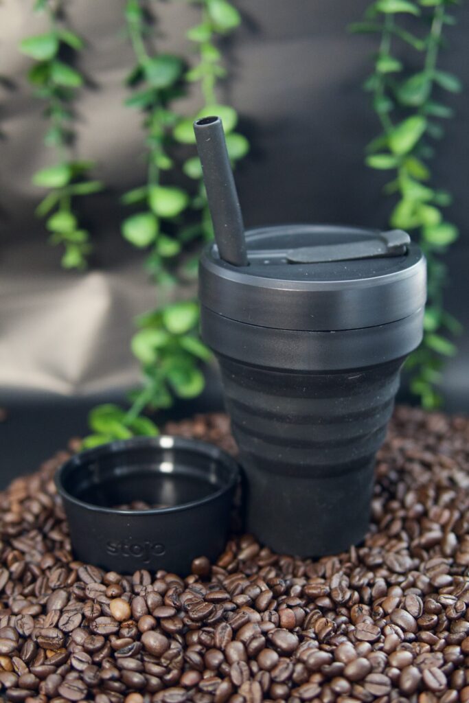 Czasem kawa z domu smakuje najlepiej, ale życie pędzi i trzeba ją zabrać ze sobą. Stojo Biggie w kolorze czarnym jest na to gotowy – składany, szczelny i wielorazowy, powstał z certyfikowanego silikonu LFGB oraz polipropylenu, wolnych od BPA, ftalanów, ołowiu i kleju. Po rozłożeniu ma 14,5 cm wysokości i 470 ml pojemności, po złożeniu – zaledwie 5 cm, więc zmieści się w torbie, plecaku, a nawet większej kieszeni. Waży tylko 198 g, więc nie obciąży Twojej codziennej wędrówki.
