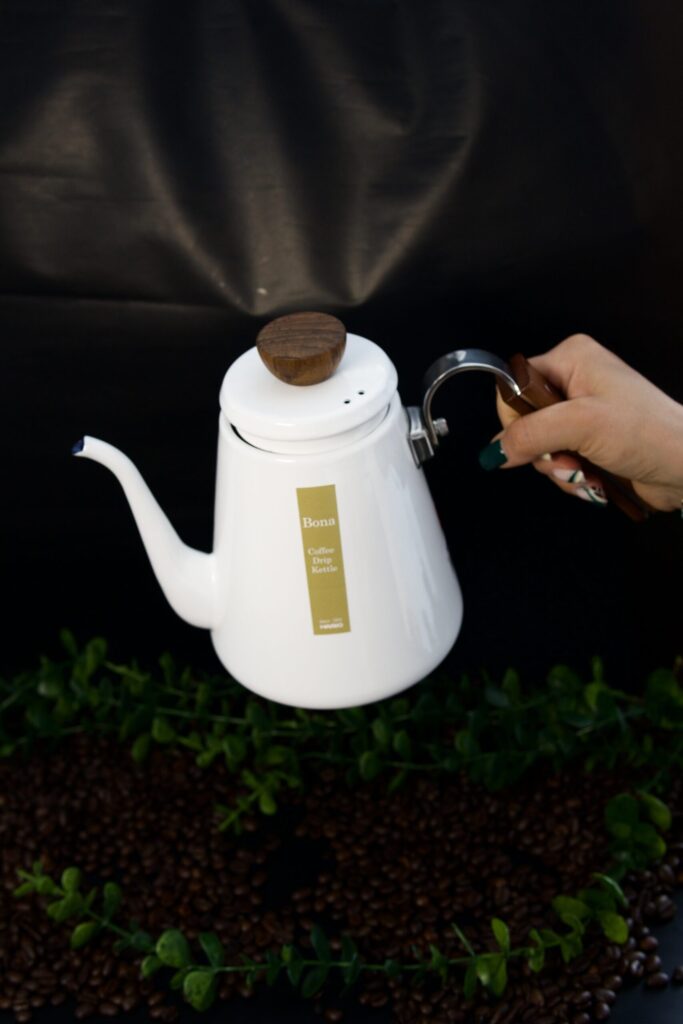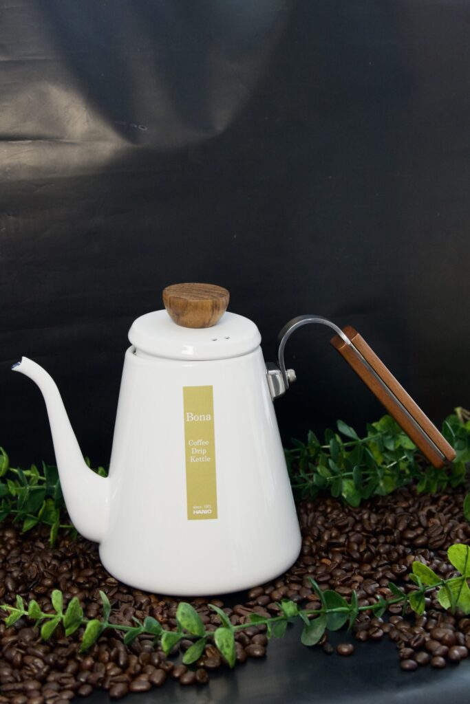 Hario Bona to połączenie japońskiej precyzji, naturalnych materiałów i minimalistycznej estetyki. Ten czajnik do przelewu wykonany jest z emaliowanej stali w eleganckiej bieli, a jego drewniane akcenty – pokrętło pokrywki i uchwyt – nadają mu ciepły, rzemieślniczy charakter. Smukła, wyprofilowana szyjka pozwala na pełną kontrolę nad strumieniem wody, co jest kluczowe w metodach przelewowych takich jak V60, Chemex czy Kalita.