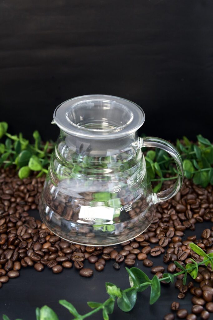 Elegancki, szklany serwer Hario o pojemności 500 ml – minimalistyczny, funkcjonalny i odporny na temperaturę.