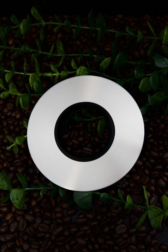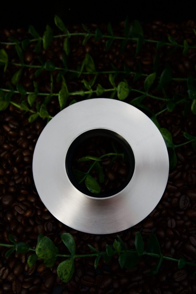 Minimalistyczny pierścień z aluminium do dripperów Loveramics – stabilizuje, porządkuje i pięknie się komponuje.