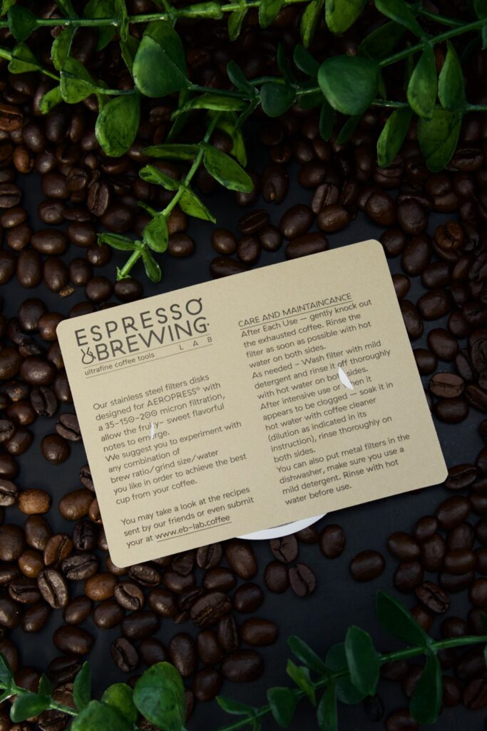 Stalowy filtr E&B Lab do AeroPress® – trwały, wielokrotnego użytku, dla czystszego smaku i pełniejszego aromatu.