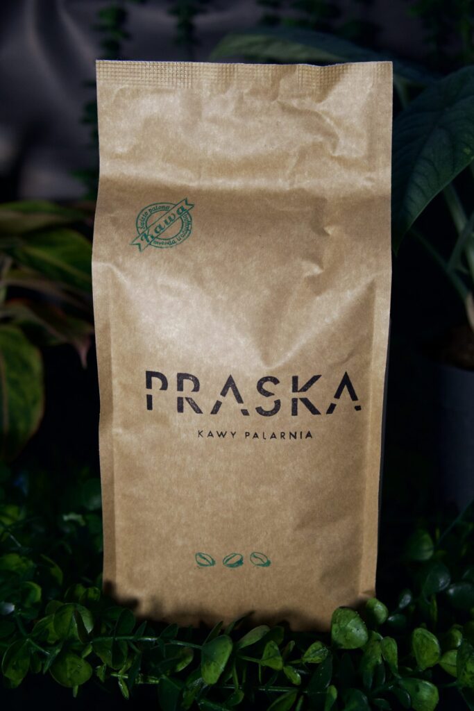 Opakowanie 1 kg, ziarnista. Palona w Łomiankach przez Praską Palarnię Kawy.