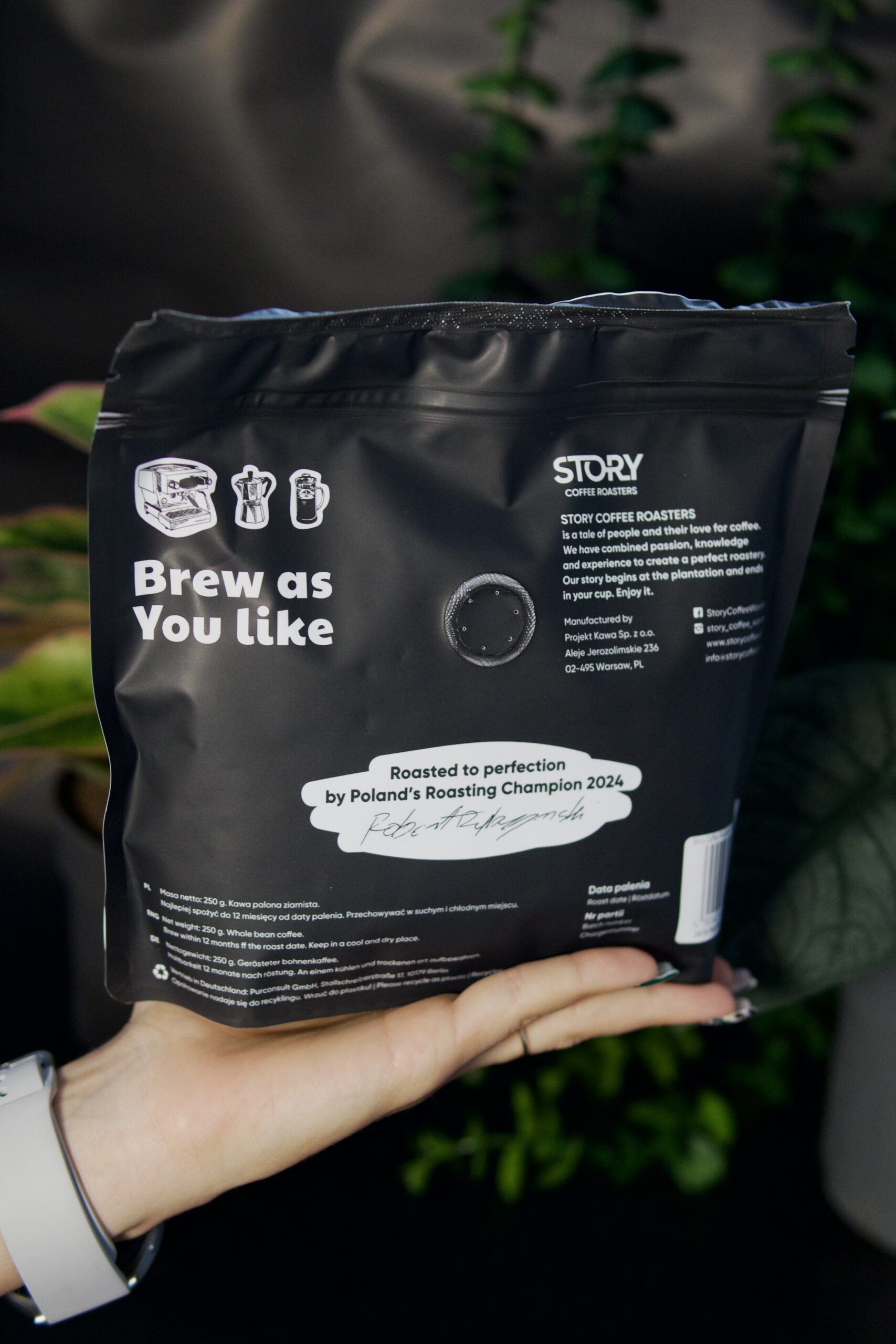 Opakowanie: 250g , ziarnista. Palona w Warszawie przez Story Coffee Roasters