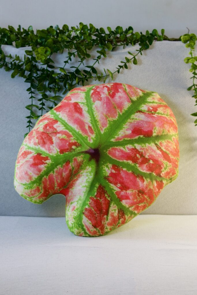 Poduszka inspirowana liściem Caladium – jak akwarela natury, miękka i wyjątkowa.