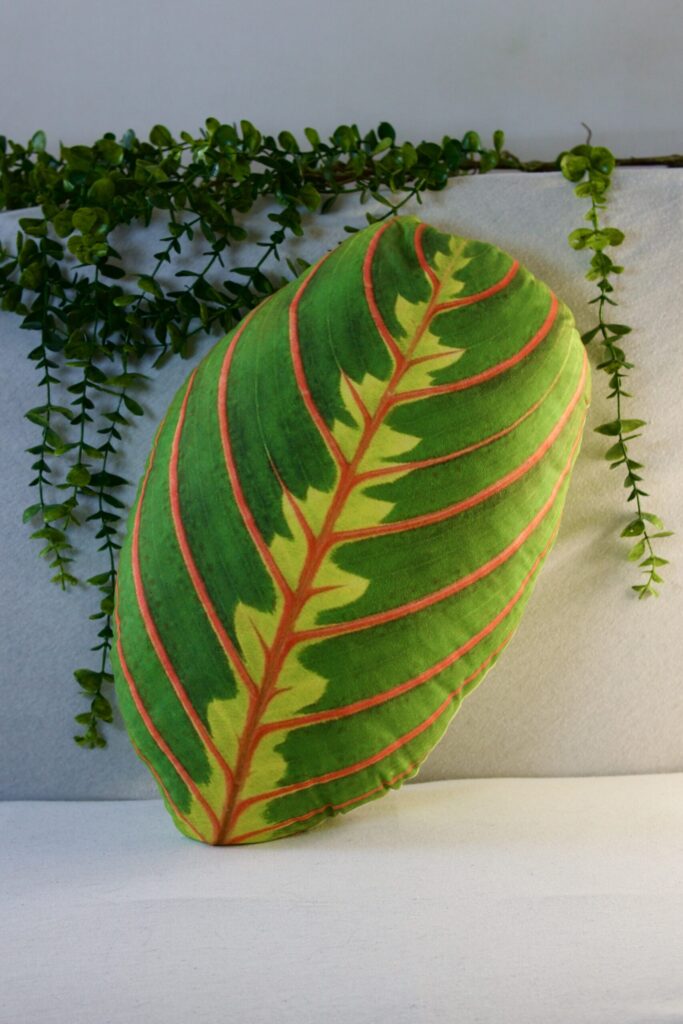 Liść kalatei zamknięty w poduszce – miękka, spokojna i organiczna forma do wnętrza.