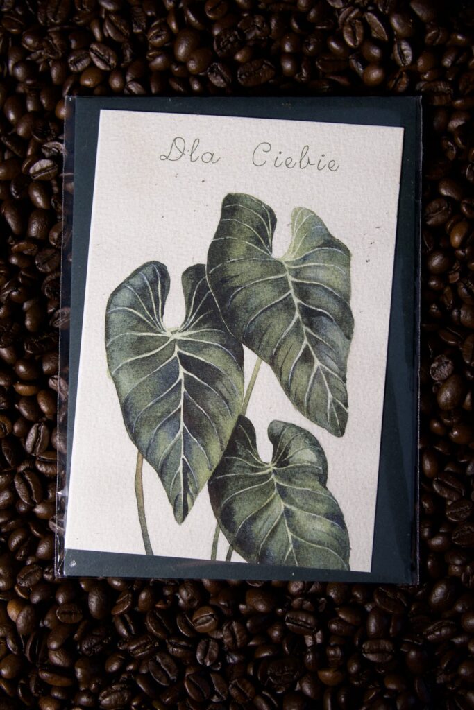 „Dla Ciebie” to elegancka, ręcznie zaprojektowana kartka z ilustracją tropikalnych liści – delikatna, spokojna, zanurzona w zieleniach. Jej siła tkwi w prostocie. Kilka słów, piękna forma i czuły gest potrafią powiedzieć więcej niż całe zdania. To kartka, która mówi: „myślę o Tobie”, bez nachalności, bez nadmiaru – po prostu.