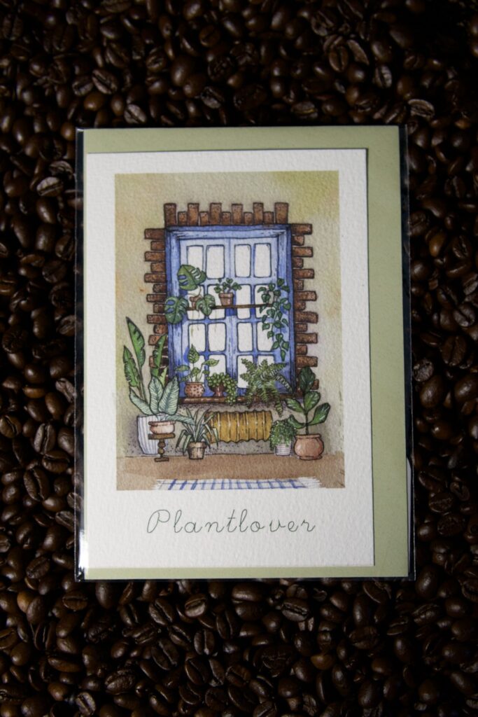 „Plantlover” to kartka stworzona z myślą o tych, którzy rozmawiają ze swoimi roślinami i czują, że dżungla w salonie to najlepsza z możliwych ucieczek od świata. Ilustracja okna tonącego w zieleni zaprasza do świata ciszy, spokoju i wewnętrznego balansu. To opowieść o codziennych rytuałach – podlewaniu, patrzeniu, byciu blisko życia.