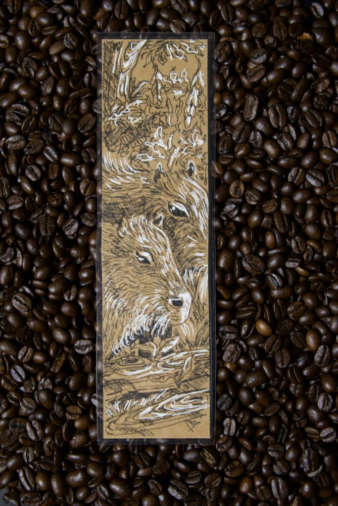 „Zakładka z kapibarami” to ciepły, urokliwy dodatek dla miłośników książek i natury. Para spokojnych kapibar, uchwycona w delikatnej, ręcznej kresce, przypomina o tym, by zwolnić i docenić drobne chwile. Symbolizują relaks, wspólnotę i zdrowy dystans do codzienności.