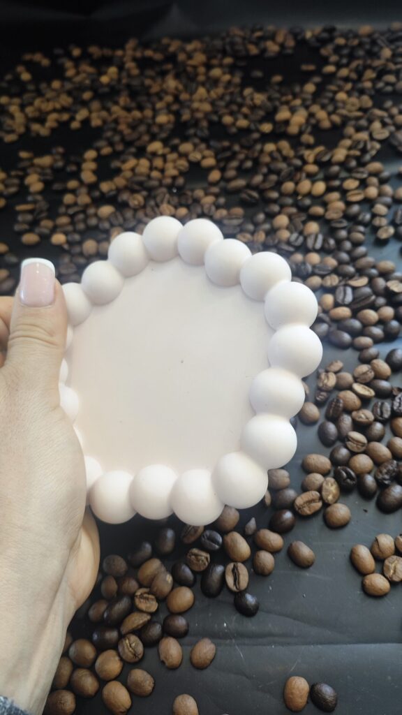 Miękka jak poranna poświata. Kremowa z nutą różu, ręcznie odlewana podstawka z naturalnego gipsu – czuły detal, który podkreśli każdy rytuał. Niepowtarzalna, subtelna, pełna spokoju.