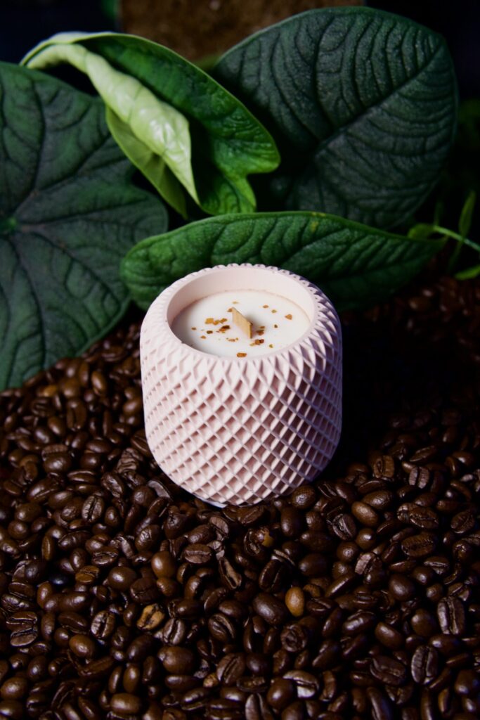 Materiał: ręcznie odlewany gips polimerowy + naturalny wosk sojowy z olejkami zapachowymi