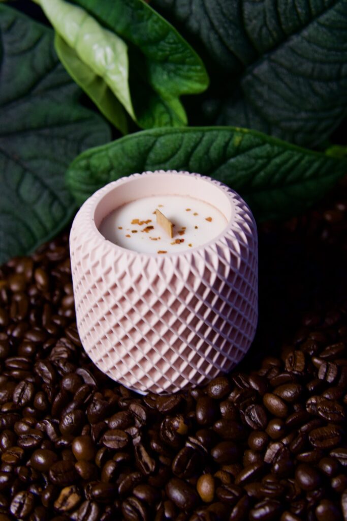 Forma świecy oszczędna, biało-różowa, przypomina letnią zasłonę poruszaną wiatrem. Jest delikatna, ale mocna – jak spokój, którego tak bardzo potrzebujemy.