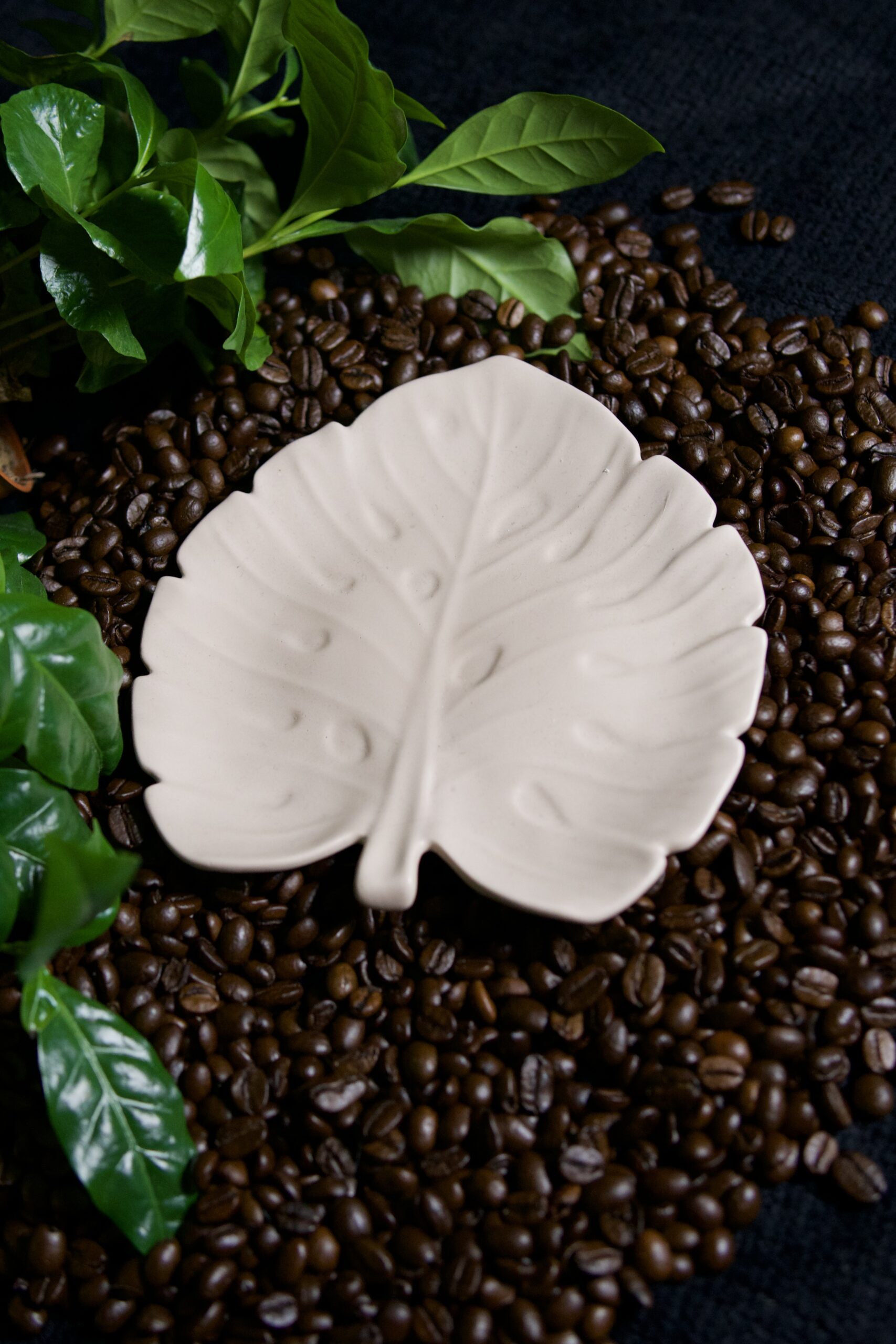 Monstera, która nie potrzebuje doniczki. Model Deli to ręcznie wykonana podstawka inspirowana kultowym liściem tropikalnej rośliny – z ekologicznego, ognioodpornego gipsu i beżowej mieszanki z subtelnymi przebłyskami bieli.